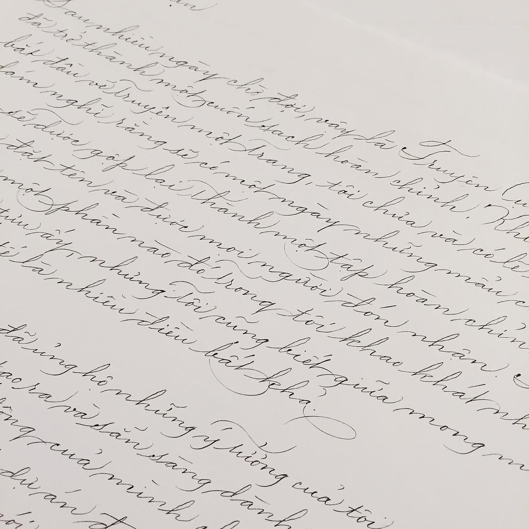 À, tại em cữ nghĩ Hoàng từ sau buổi học của cô này mới ngày đêm trau dồi, dồn hết sức vô calligraphy, ra là ngay từ trước đó cũng đã có căn bản.