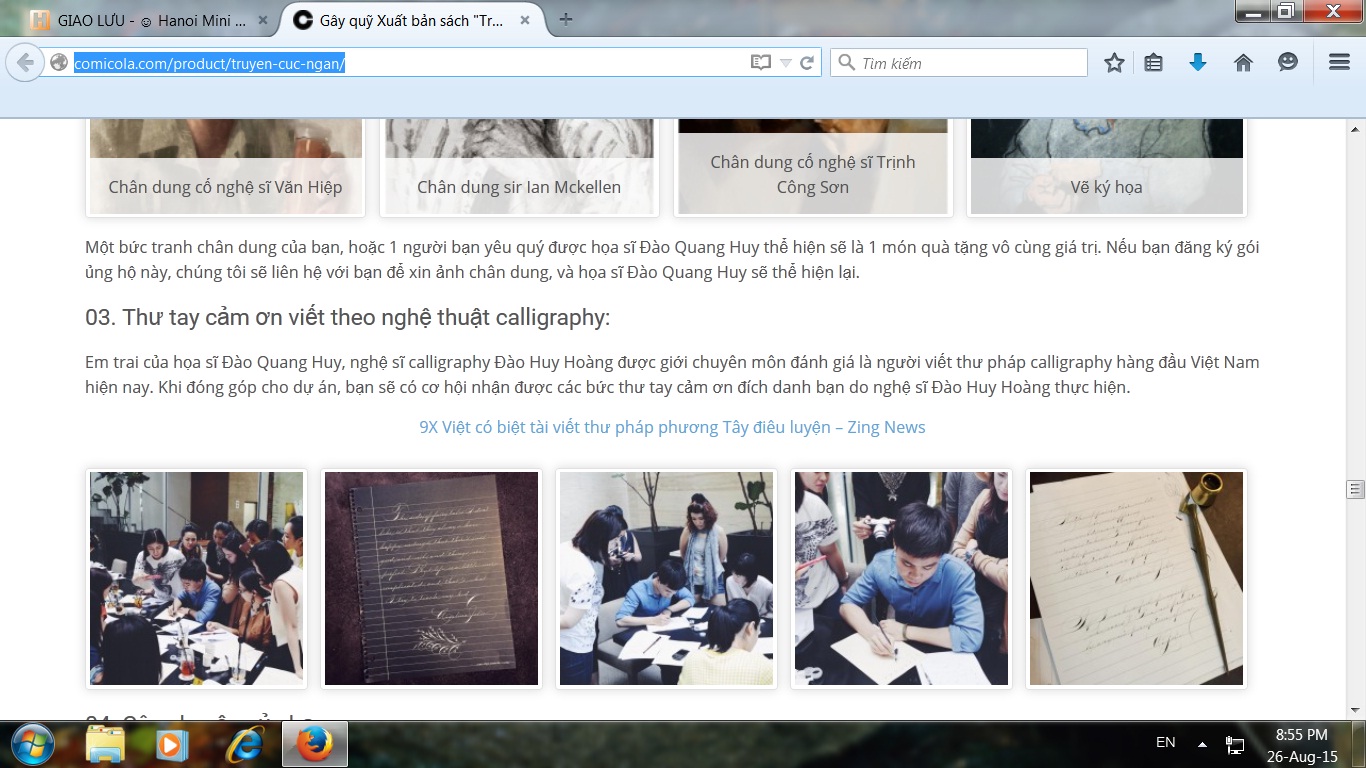 Vâng, giờ bác Hoàng còn bán cả cán bút dip-pen ở đây nữa. Bác Hoàng là con nhà họa sỹ, có anh Đào Quang Huy cũng là họa sỹ nữa mà. Và hiện giờ đang xuất bản Truyện cực ngắn, bác có thể xem ở đây.