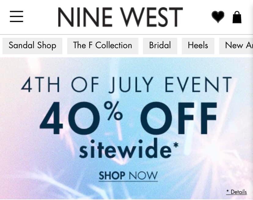 Tuần lễ July 4 náo nhiệt quá nèee. Nine west sale 40% toàn web, mấy đôi đang sale rẻ bèo mười mấy $ cũng được off thêm 40%, rẻ như hàng chợ lun á