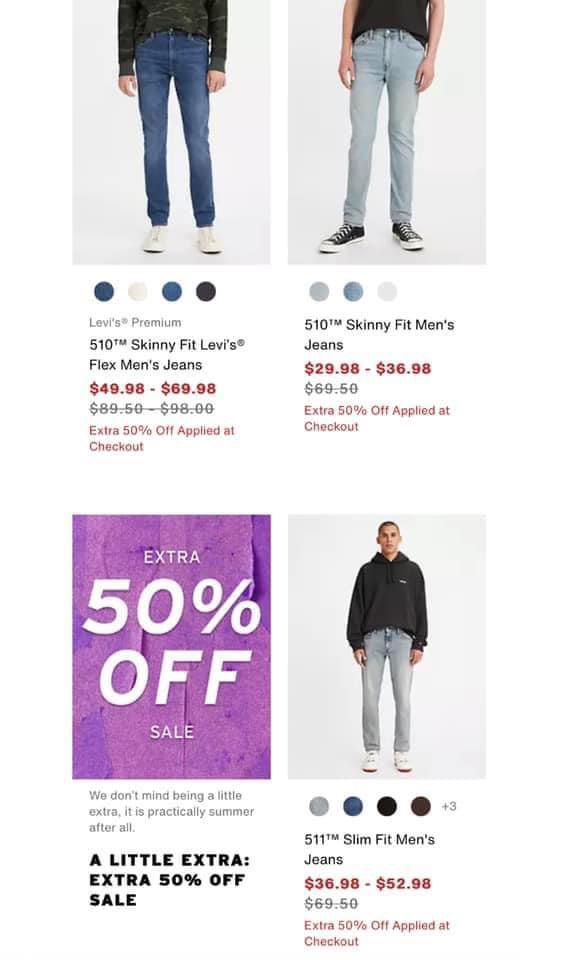 Levi’s Mỹ đang sale extra 50% toàn bộ hàng sale, cả những món đang sale cũng được sale extra tính ra lên tới 70-80% nhé.