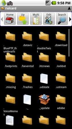 Android là hệ điều hành khá tuyệt vời của Google, tuy nhiên, hãng không hề có trình quản lí file mặc định nào. Điều này đồng nghĩa với bạn không thể kiểm tra, duyệt những tập tin mà mình hiện có trên thẻ nhớ hay trên bộ nhớ máy. Thật may mắn vì những lập trình viên của Android đã tạo ra các phần mềm quản lí file và cung cấp chúng miễn phí trên Market. Một số phần mềm quản lí bạn có thể cài đó là ASTRO File Manager, File Manager (của Apollo Software), OI File Manager. Với những máy đã root, ứng dụng Root Explorer cực kì hữu ích, cho phép bạn chỉnh sửa cả những file hệ thống. Phần mềm này không có trên Market nhưng diễn đàn Tinh Tế đã có chia sẻ.