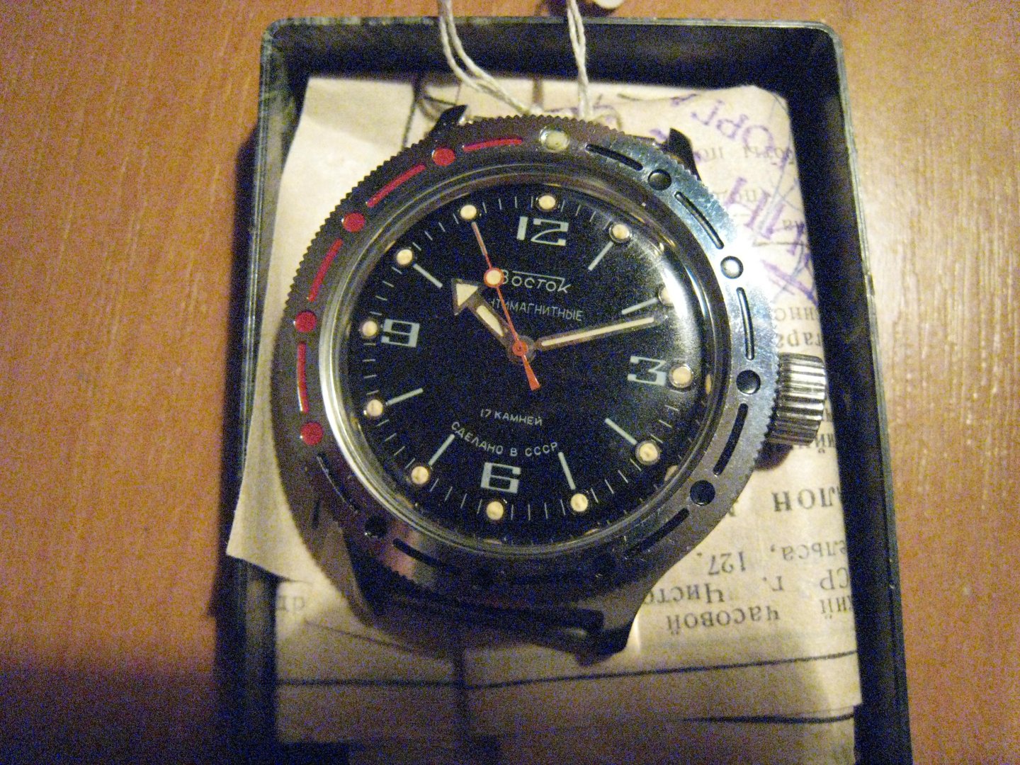 Mình sưu tầm được một chiếc Wostok Afibia còn nguyên hộp như thế này , nói về dòng Wostok Amfibia có hai loại một loại chịu độ sâu 200m và một loại chịu 300m có cả dòng lên dây và tự động . Ngoài ra nhà máy wostok sau này còn sản xuất nhiều loại phục vụ cho dân sự ...