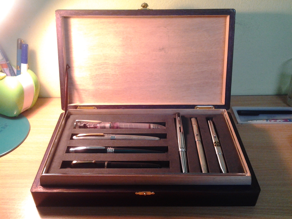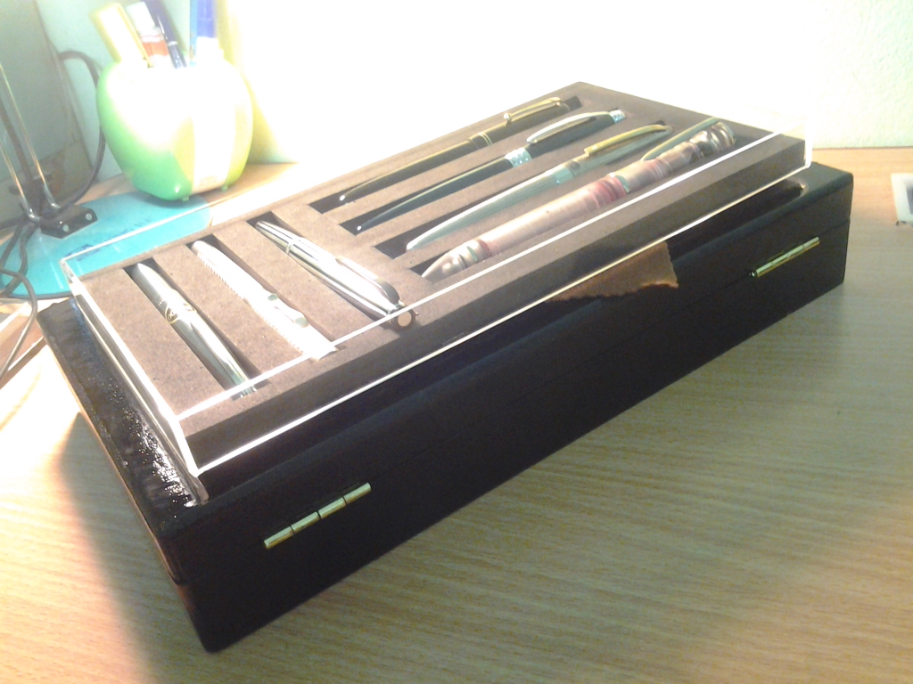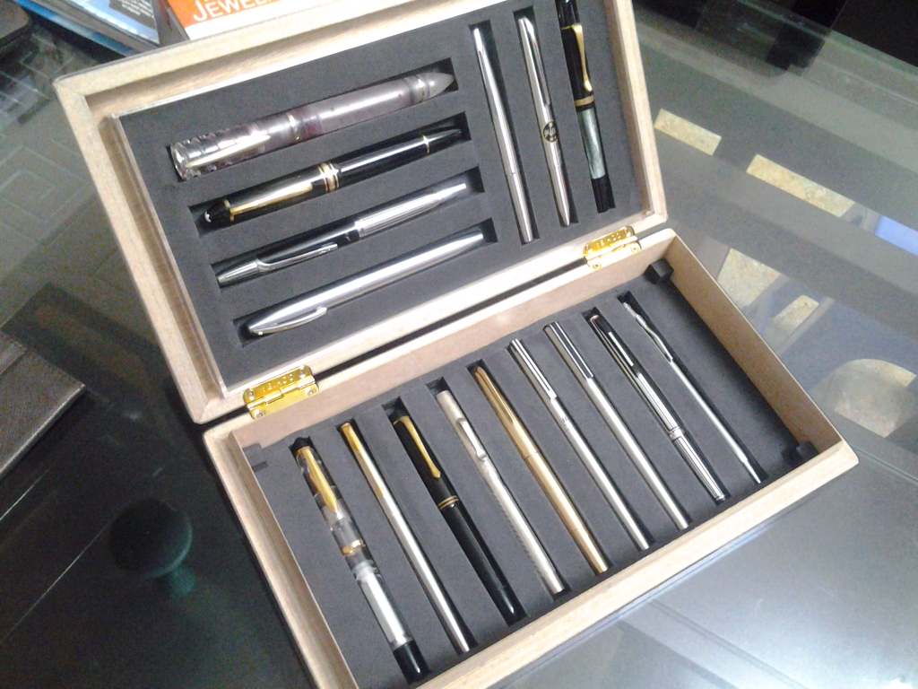 Theo em Bút là để KHOE chứ có phải để CHE đâu , vừa cho ta ngắm và mọi người được ngắm , một cái tủ kính thiết kế sao cho hợp lý để đủ Bút, mực, giấy, cả ngòi, cả converter nữa thì "phải biết" các bác nhỉ .
