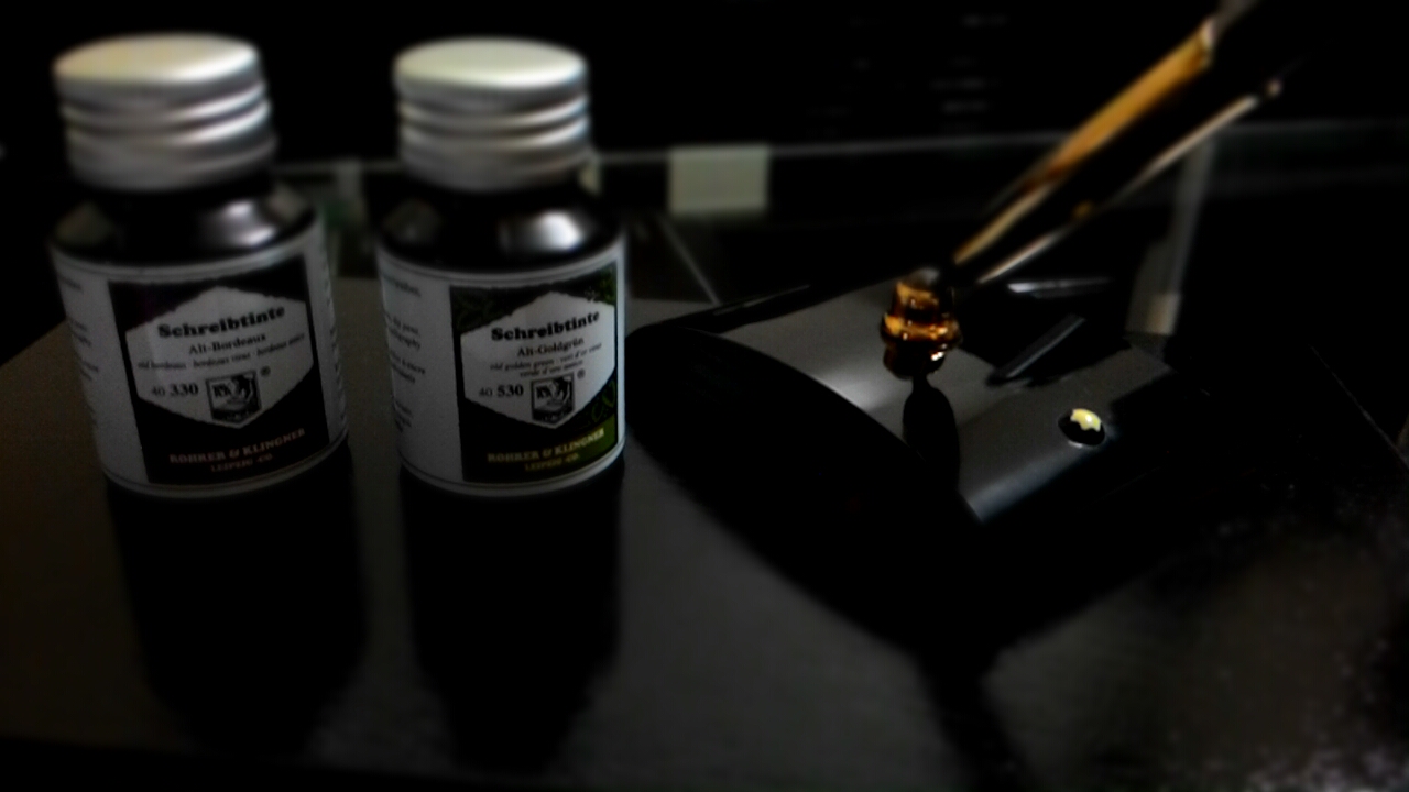 Em mới nhận quà cắp nách từ Đức, Mực Kohrer & Klingkner, màu Old Golden Green và Old Bordeaux, rất chất