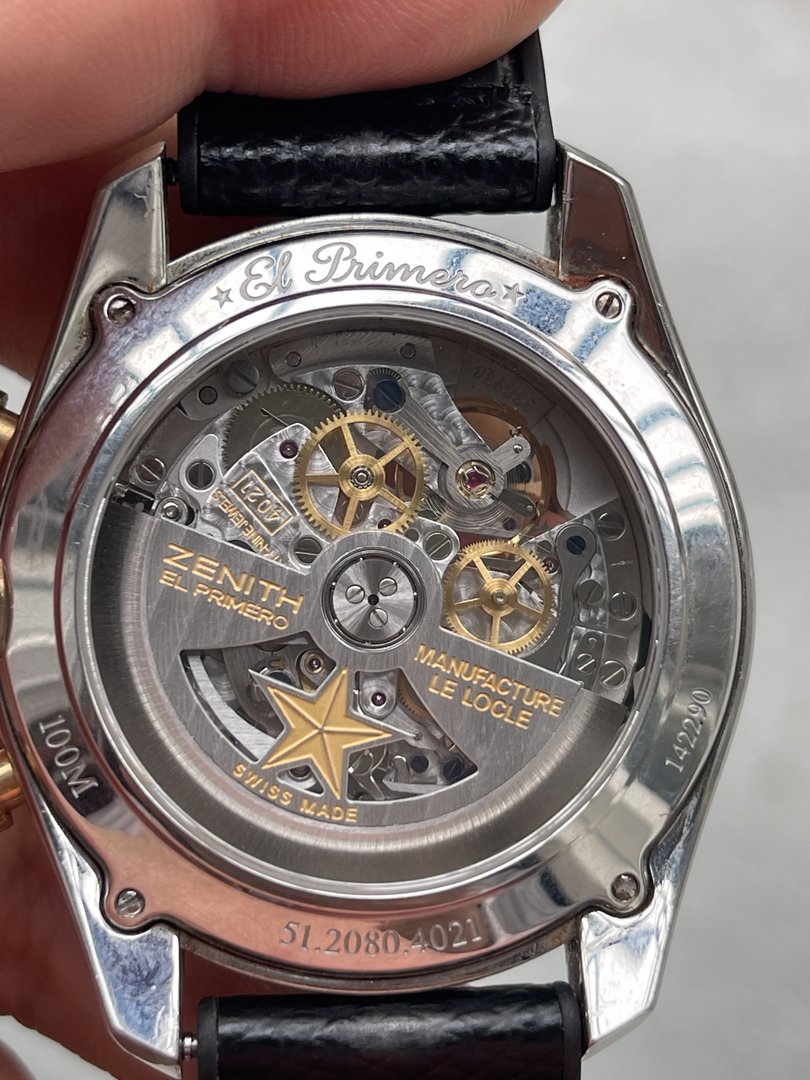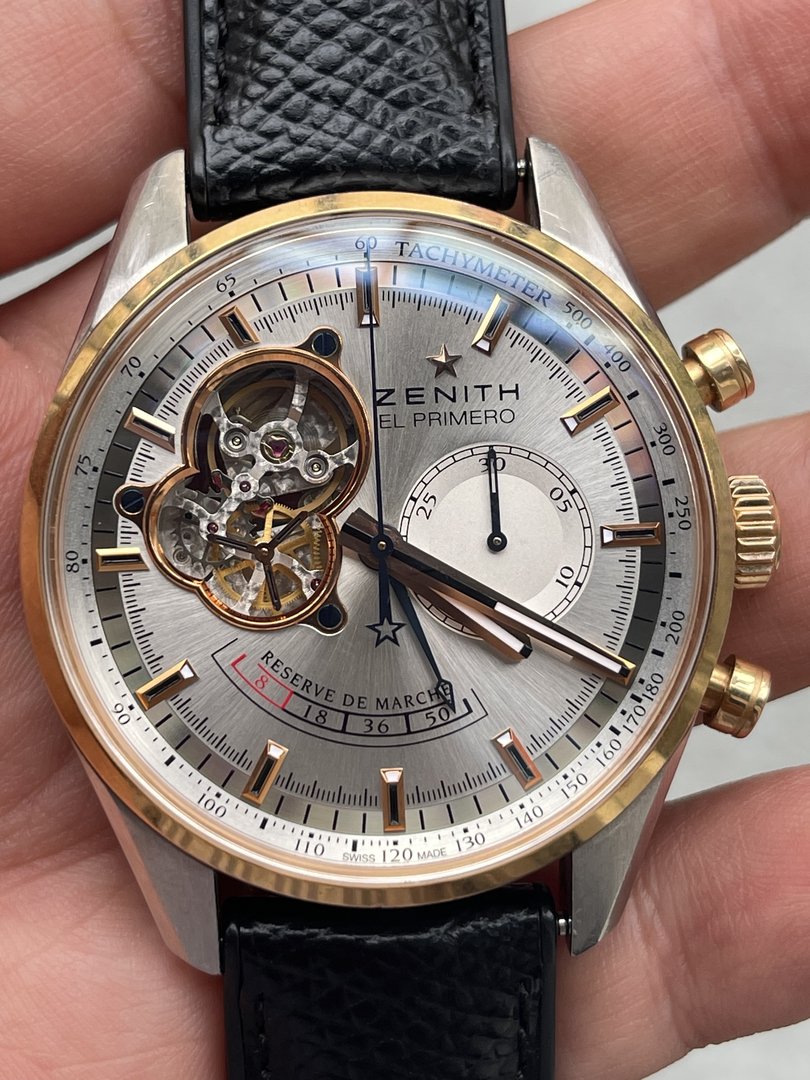 3. Zenith El Primero chromomaster Demi gold Open heart. Chỉ có đồng hồ và khoá zin dây lai giá 93tr