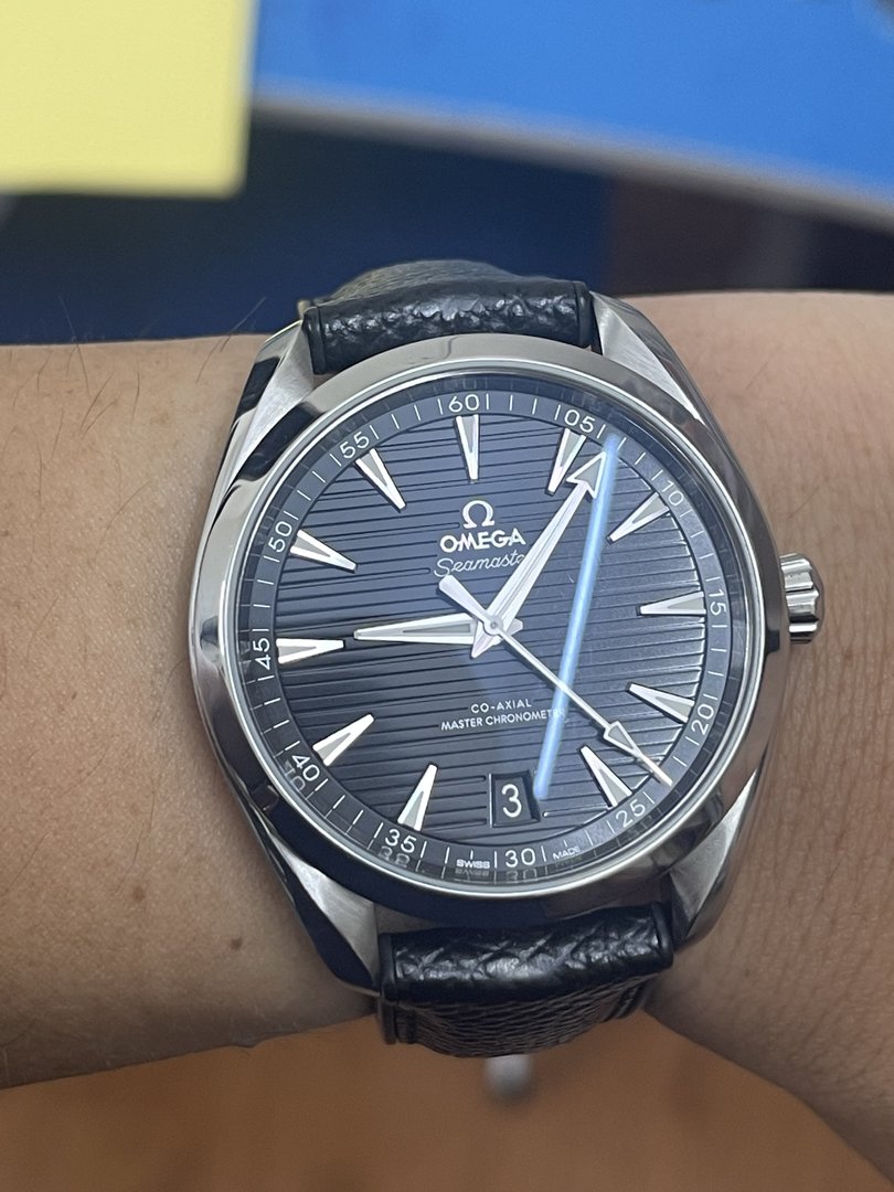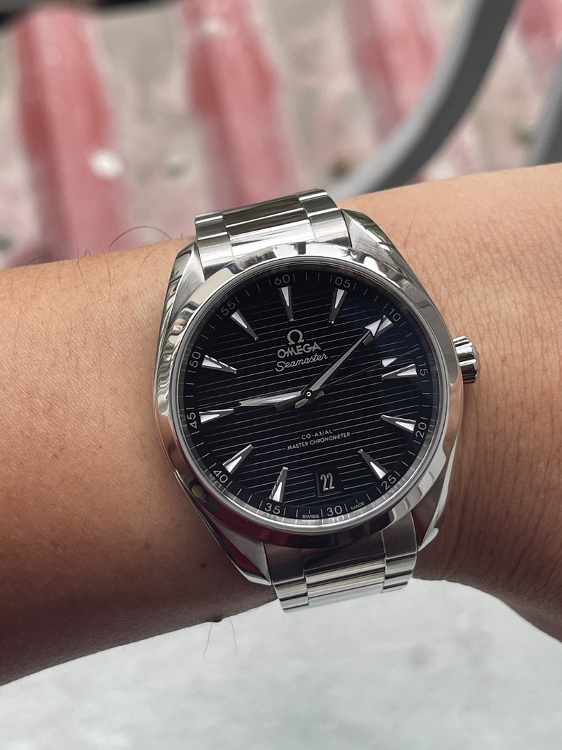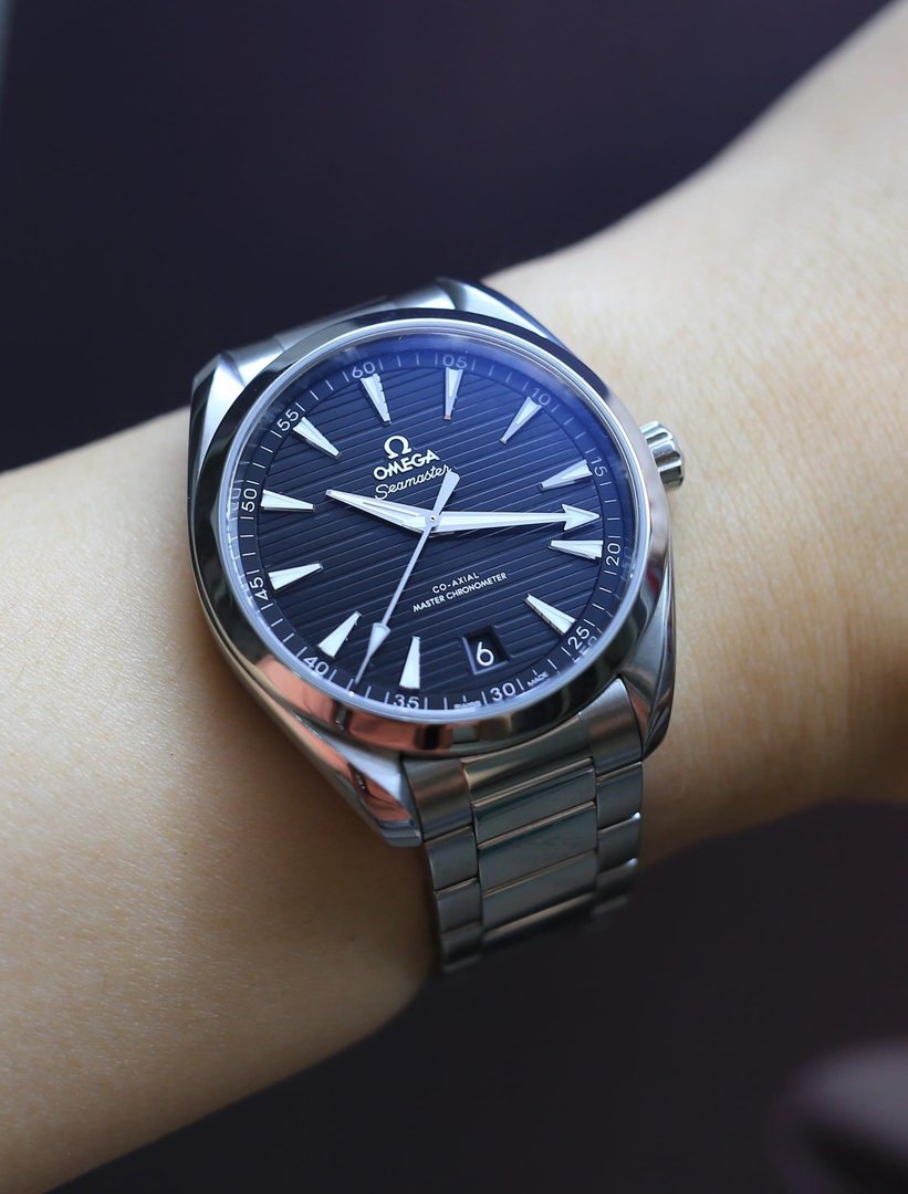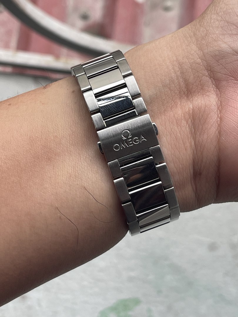 4. Omega Aquaterra 8900 mặt đen hình thức rất đẹp dây innox đủ dài cho tay loanh quanh 18cm. Có hộp sổ nhưng không thẻ giá 81tr