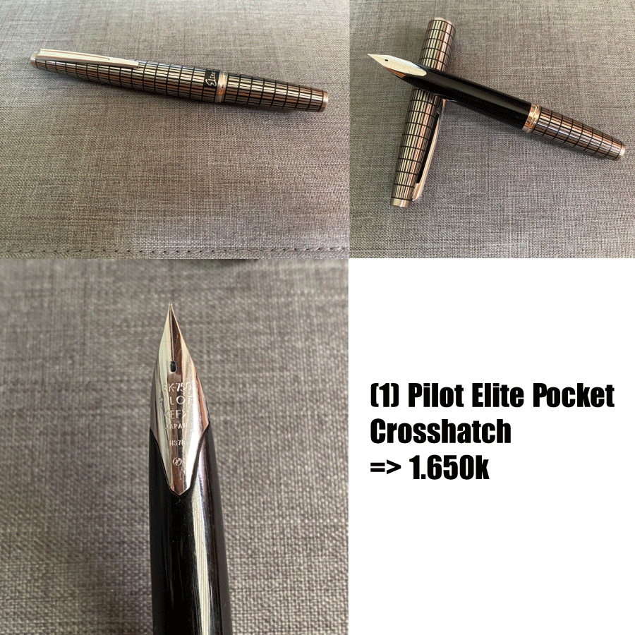 (1) Pilot Elite Pocket Crosshatch. Bút sản xuất Tháng 3/1978. Bút ít sử dụng, tổng thể đẹp.