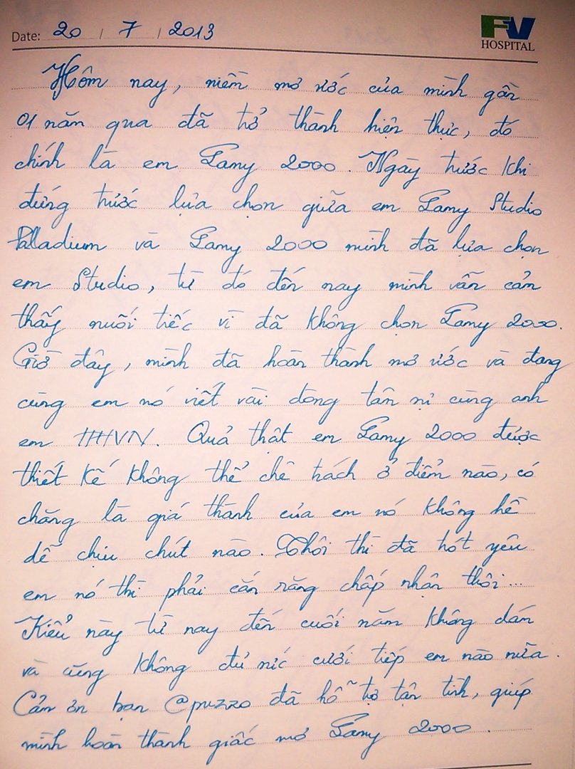 Lúc đầu mình đặt hàng Lamy 2000ngòi OM nhưng Melpens hết hàng nên đành chuyển sang ngòi EF, có lẽ nhiều anh em không thích ngòi EF do quá mảnh nhưng đối với mình thì phù hợp với nét chữ nhỏ của mình.