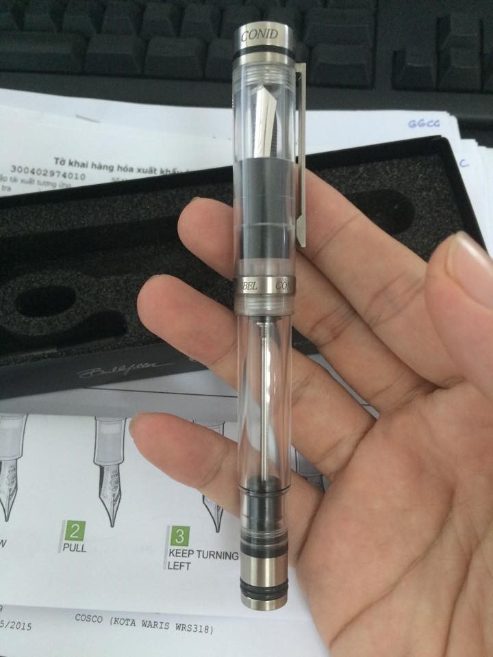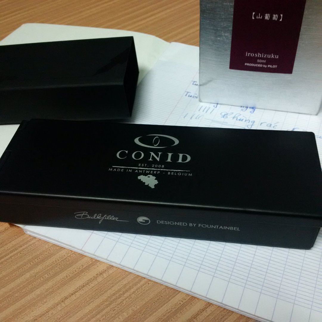 E thì văn kém nhưng theo nguyện vọng nhiều anh em và được sự động viên của A Quân , em xin review chi tiết và vài cảm nhận của cá nhân em về cây bút , Xuất xứ từ Bỉ của hãng có tên Conid là do 1 bác tên Mr.Francis nick là Fountainbel trên FPN là kỹ sư cơ khí đã về hưu và nhóm bạn của ông. Do ảnh hưởng một số thú vui khác nên em có tình cảm đặc biệt về dòng demon của các hãng bút. Mới bắt đầu chơi em tìm hiểu cũng khá nhiều nhưng do chữ viết có hạn mà dùng bút chủ yếu của em để kí . Em cũng tìm hiểu về nhiều chủng loại. Sau khi cân nhắc tương đối lâu em quyết định đến với dòng Regular của hãng