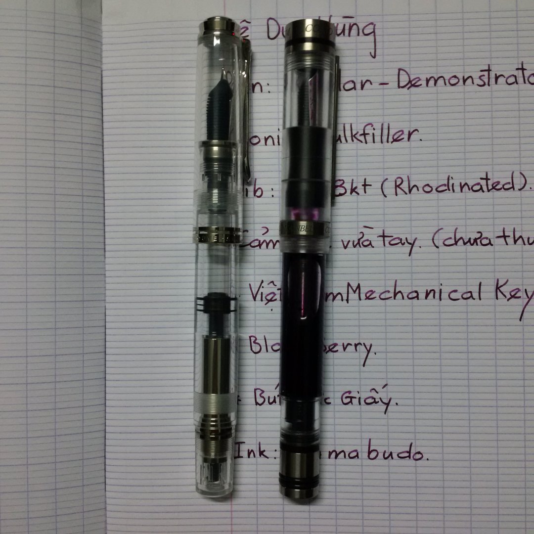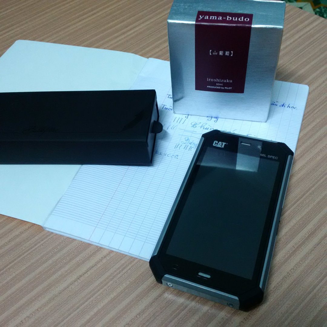 Chuẩn bị tác nghiệp do em ko có máy ảnh xịn chỉ chụp bằng điện thoại nên hình không được nét lắm, bút được uống mực yama budo ( 1 màu phù hợp với các dòng bút demon ).