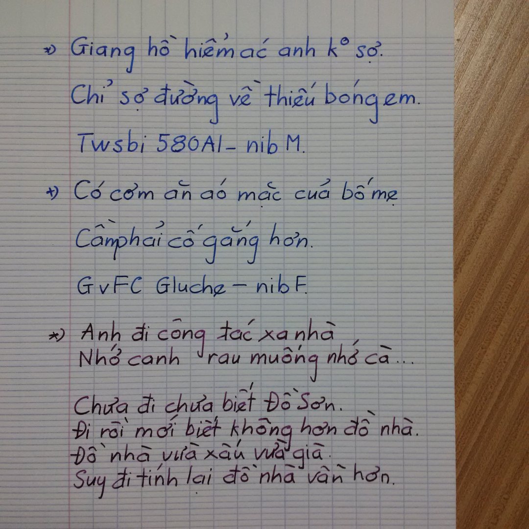 3, Ngòi bút : Ngòi của bock em thấy dáng khá đẹp nhưng hơi to viết rất trơn và có vẻ nét không được tròn cũng có thể do bút mới em viết ( đa số kí chưa quen ) nên bút chưa được thuần. Viết bút mới cũng như cưỡi 1 con ngựa mới cho đến khi mình làm chủ được nó cũng cần có thời gian để thuần hóa.