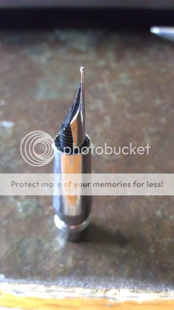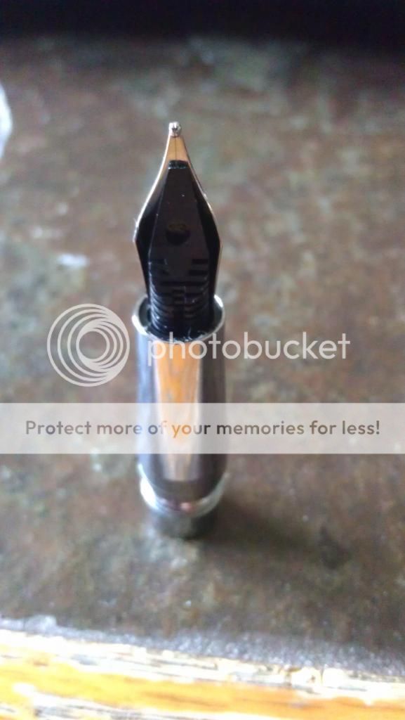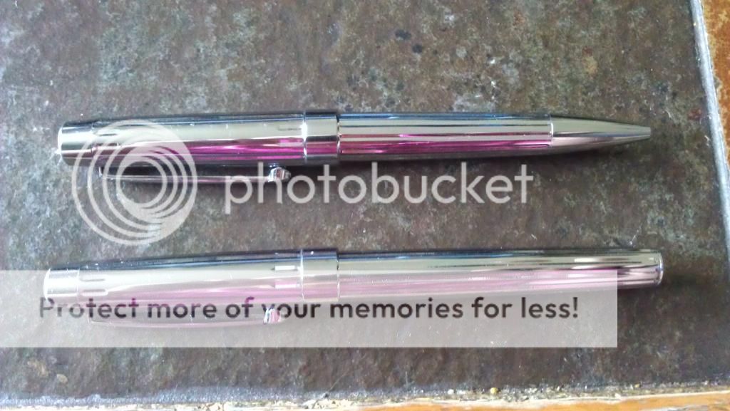 Sau 1 hồi lục lọi, lại được ông cậu cho thêm 2 cây bút- 1 mực, 1 bi, đi kèm với bao đựng bút, toàn thân bằng niox sáng loáng, noname, nhưng ngòi của bút mực có chữ Iridium Point Germany (chưa rõ xuất xứ). Cảm giác cầm khá nặng tay, nhìn cũng có ''cảm giác hàng hiệu'':D. Xin hỏi ý kiến ae là có nên cho e nó lên sàn đấu giá ko? Để lấy bút ra viết thì xoay 1 vòng nhé. Hàng này mua lâu để quên ko xài:D