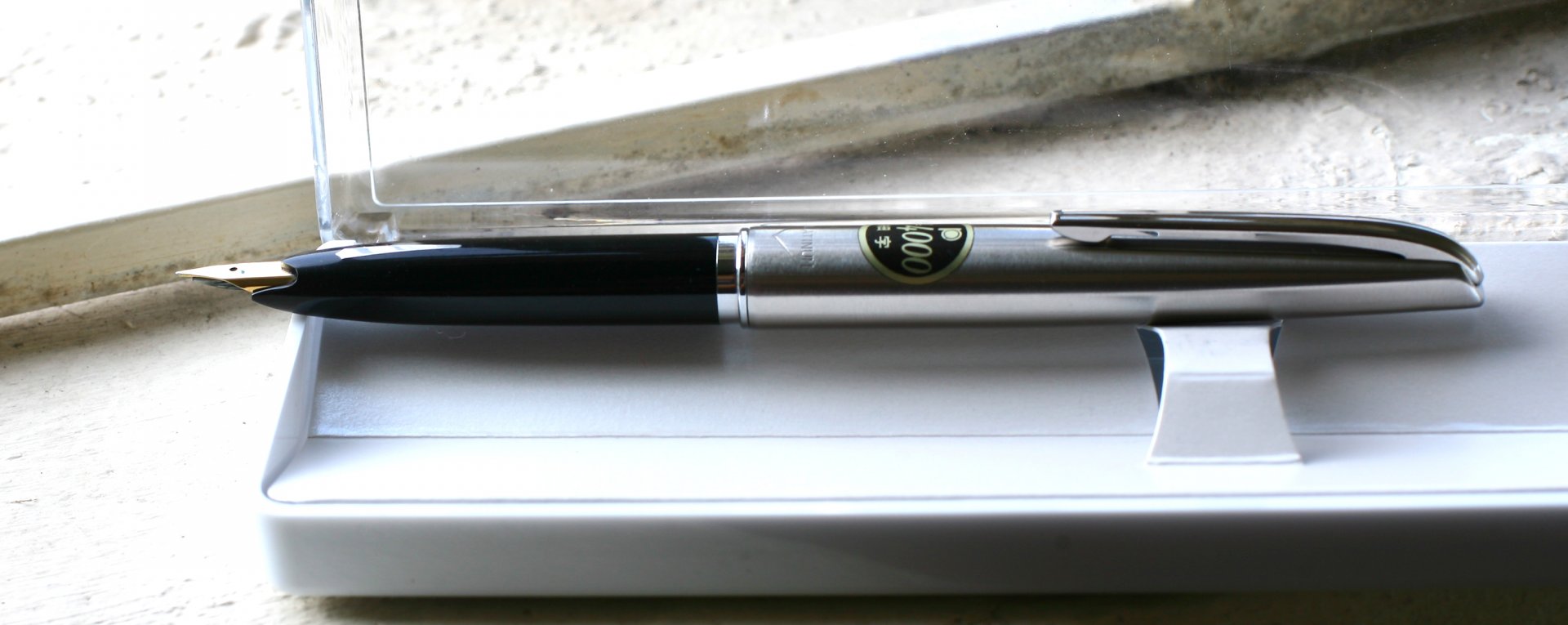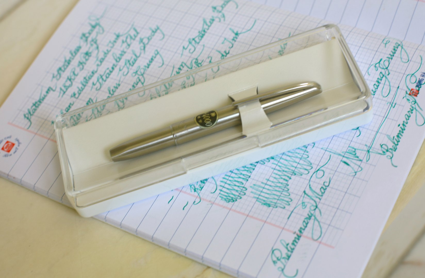 híc nhìn cái cây Stainless Body kia thích quá, thui chào các bác em đi...rửa bàn phím đâyHàng mới của em đây: Platinum Stainless Body Pocket Fountain Pen with 18k gold nib F