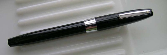 Chú Hùng đã rất “kỹ tính” đóng trong 1 hộp xốp nhỏ cứ như cây bút sẽ chu du khắp địa cầu vậy , trước mắt là một cây bút đen lánh như viên huyền ngọc được cắt gọt và trang trí để phần vỏ cây bút sang trọng hơn, phần cuối nắp được trang trí một vòng “nhẫn” inox bóng loáng chừng 1 phân tây , nó nổi lên sự kiêu kỳ như muốn kết nối ánh kim với cái gài bút “không lẫn được”,đỉnh nắp thiết kế vuông , vát xuống chừng 1 phân tây là ôm tròn như kết cấu cổ điển , một nét riêng của Sheaffer chăng ? Cái gài bút chừng 3 phân cũng mạ inox bóng loáng và đặc biệt một viên bi dẹt màu trắng điểm trên đỉnh của cái gài bút , một “dấu ấn” riêng là phần “độc” chăng ? Dù còn cài trên túi áo , người ta nhìn viên bi trắng trên cái gài bút v à nhận ra ngay : Bút Máy Sheaffer.