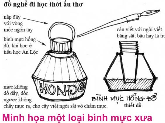 Bác tài thật kiếm được cái hình này cực hiếm :D, ngày 19/11/ coi cái hình này mình nhớ lại khi xưa đi học một tay xách túi 2 quai, một tay xách lọ mực loại thấp không đổ mực mà bàn học sinh cũng khoét lõm chỗ để lọ mực cho mỗi học sinh :cool: