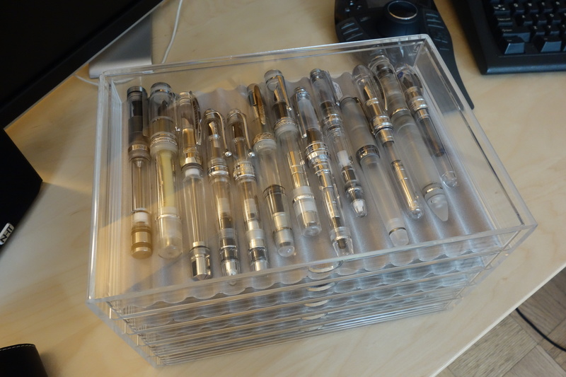 Sau khi vào hội em cảm thấy đam mê dòng clear nhưng khi bước vào rồi mới biết mình còn nông cạn vì có rất nhiều sự lựa chọn em có lên FPNW và có xem được 1 toppic của 1 bạn dân chơi bút trên đó mới thấy họ sưu tập rất là kì công về dòng bút Demonstrator. Sau khi xem của bạn này em đã cố gắng để có 3 cây clear :