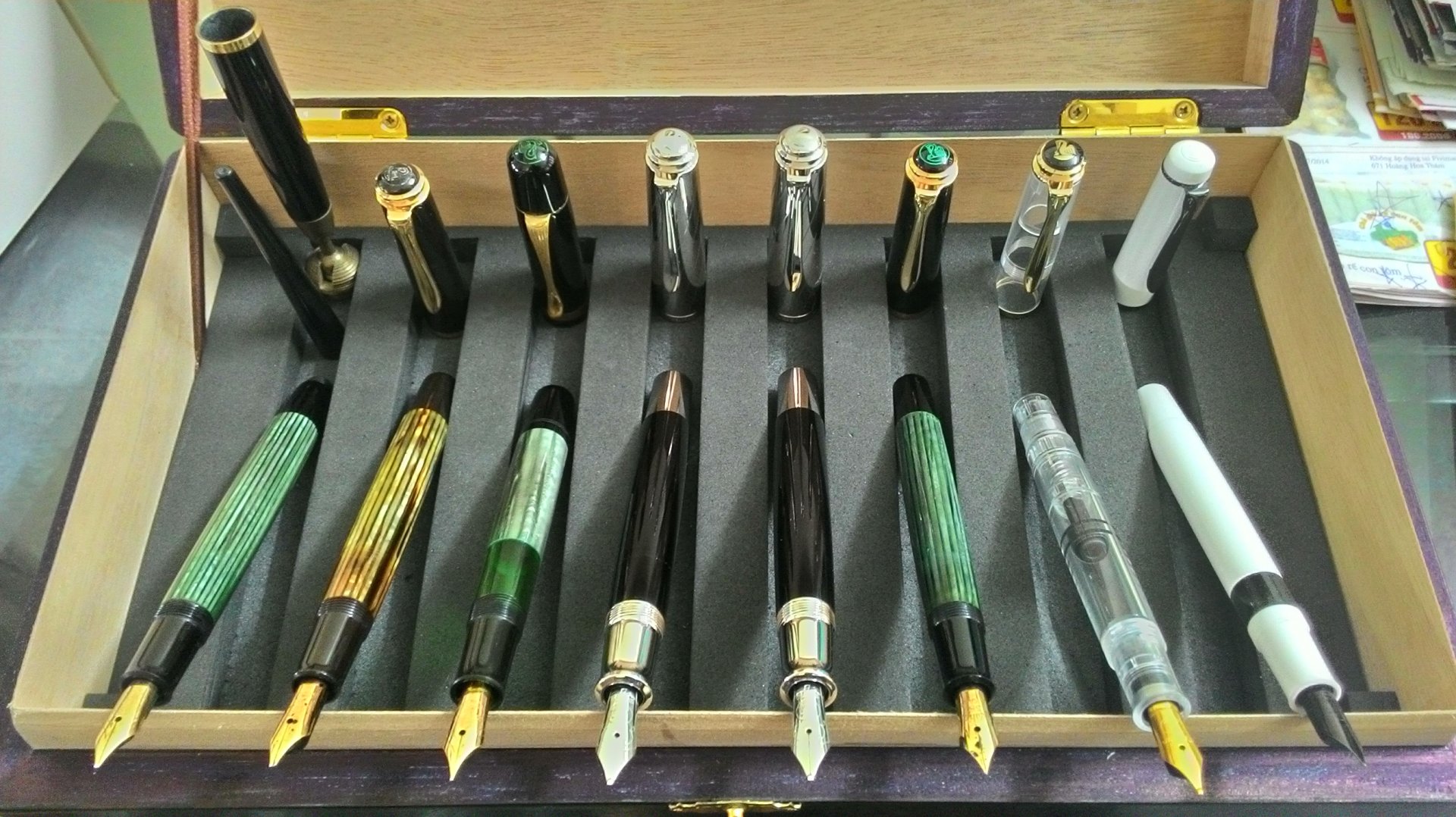 Nhưng mình có một phiền toái khiến rất hay mất hứng khi dùng viết máy là: Mực ra nhiều quá (hiện đang dùng Pelikan, Waterman và Parker), kế đến là giấy thấm mực bị loang, viết nét ra không được như ý. Mình không biết nhiều về mực và giấy, nên pó tay....