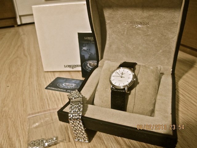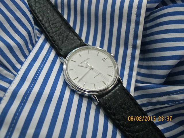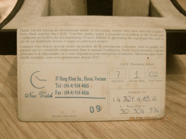 Người bán hàng có vẻ như là một bậc thầy về tâm lý, quẳng ngay cho em cái phao "em xem mấy cái Longines này đi, loại này bây giờ đang là mode đấy" . Hai chiếc giống nhau 1 auto một quartz. À cái này thì em biết, đồng hồ tự động kim giây chạy không bị cà giựt nhìn thích mắt hơn. "bao tiền chiếc này hả anh" "560USD em ạ". May quá đủ tiền. "em lấy chiếc này!" em vồ ngay lấy sợ anh bán hàng lại dẫn sang khu vực nghìn đô. Thanh toán tiền VND hết khoảng trên 8 triệu gì đấy, đổi ra vàng chắc cũng phải được đơn vị cây...