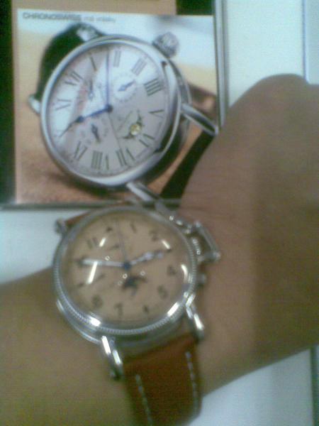 "Vợ' em,không được đẹp như "vợ"của mấy bác đây nên đi đâu em cũng để ở nhà.Do phong trào anh em trưng "vợ" lên cao em quyết định dẫn đến ra mắt các bác.Xin cho em tràng pháo tay vì sự dũng cảm:).Hình em chụp qua 6300 nên trông càng bẩn.(Hinh 1:"vợ" em.Hình 2:"vợ" em và "ngôi sao điện ảnh" Chronoswiss Perpetual calendar.Hình 3:"vợ" em và "viên gạch nửa" Looxt810.Hinh 4:Máy của "vợ" em:D)