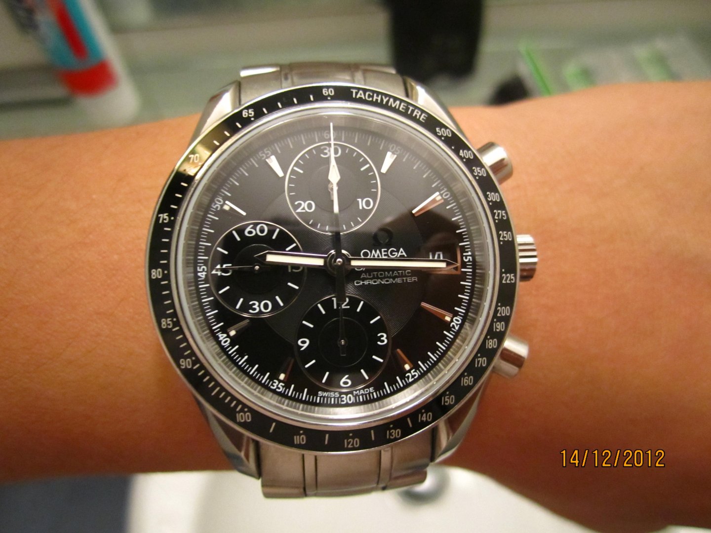 Tay bé, đeo đồng hồ to làm chi vậy anh, để thằng em đeo đỡ cho:)