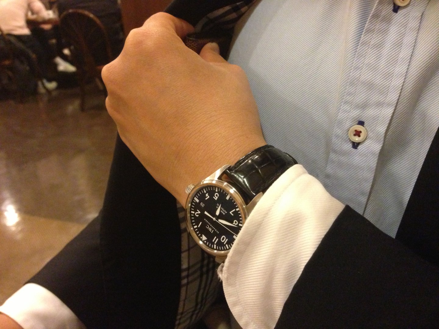 Đi ăn và bàn hợp đồng với khách. IWC mark đơn giản, áo sơ mi hơi cũ cũ tí nhưng đem lại may mắn (duy ý chí tí), đi với vest Burberry. Đơn giản, lịch lãm, sang trọng nhưng không khoe mẽ theo kiểu "tao có tiền". Cái này là bài học vỡ lòng em học được khi đeo Rol...đi bàn hợp đồng. Khi đó, đối tác đã "tát vào mặt" em thế này: mày đeo đồng hồ thế thì chắc là lời kinh lắm, vậy mà dám mở miệng đòi giảm giá à!? Từ lần ấy, em cạch Ro điệu luôn...hihi