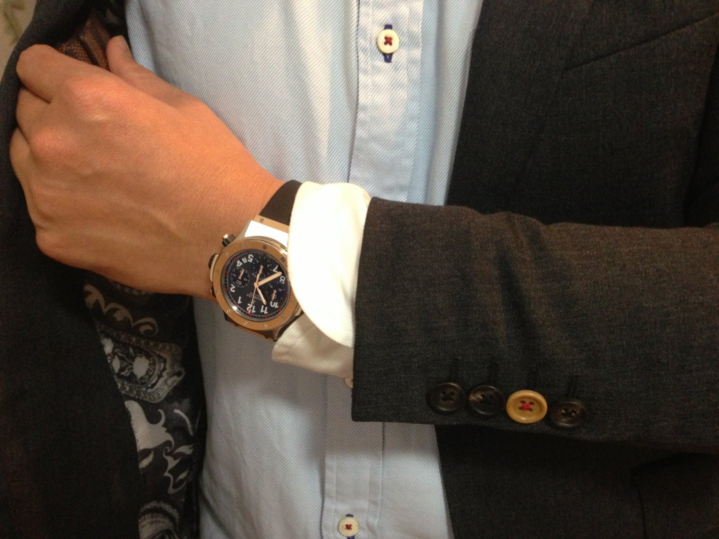Tối đến, đi bar uống mừng. Dùng em Hublot, khoác vội jaket Paul Smith. Sự lấp lánh của em Hublot kết hợp với ánh kim xám, hoa văn, thiết kế "rân chơi" của Paul Smith trong ánh đèn màu của bar, thì đảm bảo mình không phải là người xin số phone các em PG, mà là ngược lại