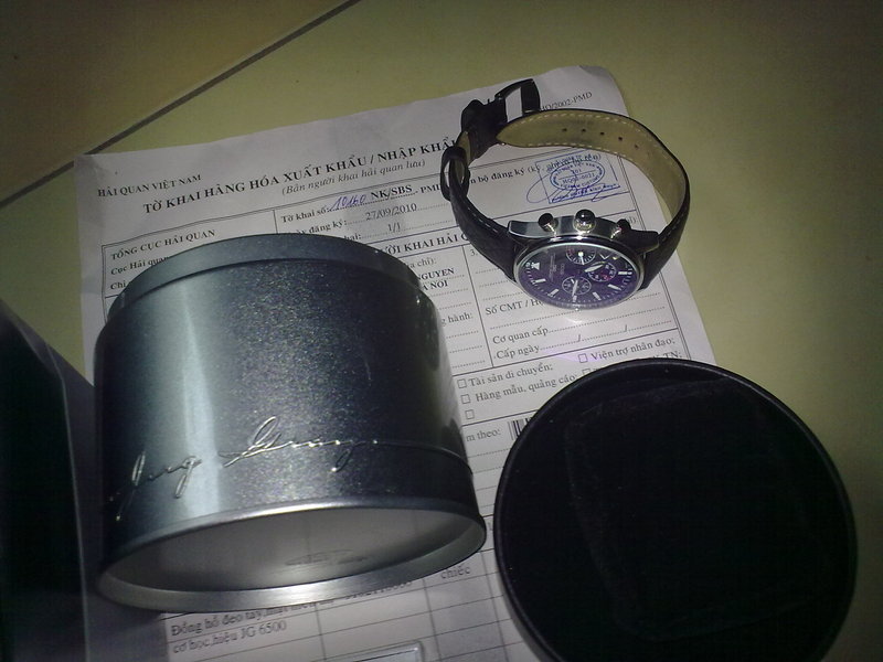 Xin chào các bác, em là thành viên mới của handheld, em muốn xin các bác đánh giá cho em chiếc đồng hồ này, nó là chiếc jog gray 6500, commemorative edition, chiếc watch này giống với edition mà Obama đeo lúc inauguration day. Em định mua qua 1 anh của muare, anh đó để nghị mức giá là 2t9, và gửi cho em 1 số bức ảnh+ giấy tờ hải quan, các bác tư vấn cho em xem cái này có hàng fake ko?và giả sử sau này chiếc đồng hồ này hết pin thì em biết kêu ai=((, chiếc đồng hồ này case diameter là 41mm, hjhj, tay em hơi nhỏ, vòng tay có 15mm thôi, liệu có đeo đẹp không nhỉ?em cám ơn các bác, ah quên hjhj, chiếc này là japan movt ( chứ không phải là japan made nhé các bác) theo bác vs 2t9, có nên mua chiếc japan movt này không à? hjhj >