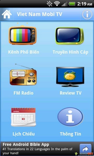 Chương trình phiên bản 2.0 mới cho phép người dùng xem 58 kênh truyền hình và nghe đài radio miễn phí thông quan kết nối wifi hay 3G. Ứng dụng còn cung cấp cho người dùng khả năng xem lại 1 số chương trình đã phát sóng VOD TV, lịch phát sóng 18 kênh phổ biến...Xem miễn phí 58 kênh truyền hình Việt Nam các kênh sau: VTV1, VTV2, VTV3, VTV4, VTV6, HTV7, HTV9, THVL1, THLV2, DỒNG NAI 1, DỒNG NAI 2, VTC1, VTC2, VTC3, VTC4, VTC6, VTC8, VTC9 LET'S VIET, VTC10, YAN TV, YEAH1 TV, SCTV, SCTV1, SCTV3, SCTV5, SCTV6, SCTV7, SCTV8, SCTV9, SCTV10, SCTV11, SCTV12, SCTV13, SCTV14, SCTV15, SCTV16, QTV1, QTV3, HÀ NỘI 1, HÀ NỘI 2, ITV, VĨNH LONG FM, VOV1, VOV2, VOV3, VOV5, VOVTV, VOV GIAO THÔNG HÀ NỘI - HỒ CHÍ MINH, BRT, TRT, FM TRT, VPTV, TODAY TV, VTC11, VTC14, , VTC HD1, VTC HD2.