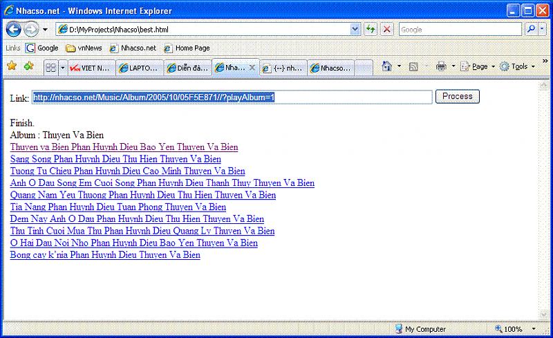 Kết thúc: tuy là một cách hơi thủ công, nhưng cũng dùng tạm được vì NhacSo.net cũng chỉ có vài bài trong một vài khu là nghe được, số còn lại dành cho các cháu teen-age, mình hổng có nghe được. Chúc dzui... ;-)