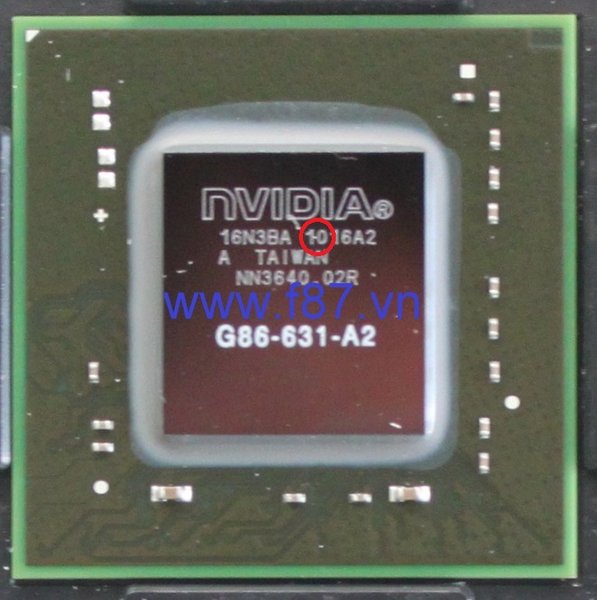 Và đây là cách để ACE phân biệt dòng chipset được sx để fix lỗi hỏng VGA những đời trên căn cứ vào năm sx (chỗ khoang tròn màu đỏ) tất cả các lại chipset trên phải có năm sx từ năm 2010 trở lên thì sau khi thay mới hết triệt để được bệnh lỗi vga nvidia trên laptop được sx năm 2007,2008 và đầu năm 2009.Các bạn lưu ý chipset fix lỗi thường đắt hơn rất nhiều loại chipset mới nhưng sx vào giai đoạn lỗi kể trên.Điều này cũng lý giải tại sao có chỗ báo thay mới vga dòng này rẻ đến vậy.Việc thay các dòng chipset lỗi vẫn làm máy chạy được có điều chỉ vài tháng sau là lỗi lại và lại phải thay tiếp.Thay chipset hoặc đóng lại nhiều lần gây phông rộp hoặc giảm tuổi thọ của main.(do tác dụng nhiệt nhiều lần).Vì vậy khuyến cáo ACE nên tìm chỗ uy tín và thayc các loại chipset fix lỗi trên để đảm bảo rằng máy không lỗi VGA lại nữa.ACE nào đọc hết bài này tất sẽ phân biệt được năm sx của chipset để yêu cầu nơi sửa chữa laptop cho mình thay đúng chủng loại hoặc nặng hơn là bị lừa.