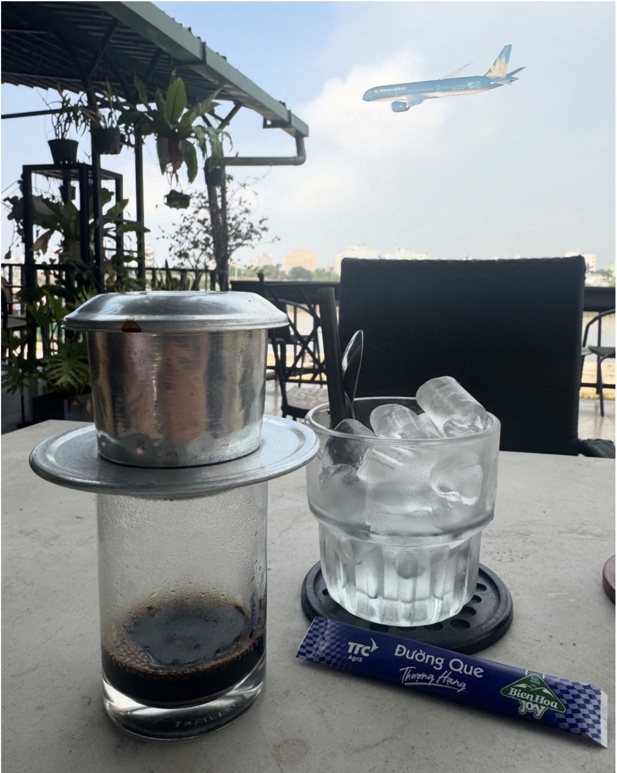 Ở Sài phố có mấy quán nhậu hình như đường Thái Sơn, Dương Quảng Hàm gì đấy, cụng ly xong chưa kịp chén mồi thì lại có 1 chiếc hạ cánh, làm ko dám gắp, cứ sợ lốp nó rơi trúng bànCafe ngắm sông SG, và đếm máy bay đáp khu Bình Lợi.