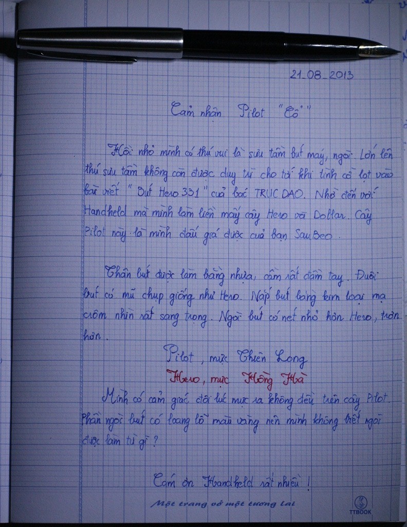 Mình xin chỉnh sửa trên bài viết là: bút được viết bằng ống mực kèm theo, chứ không phải mực Thiên Long ^^