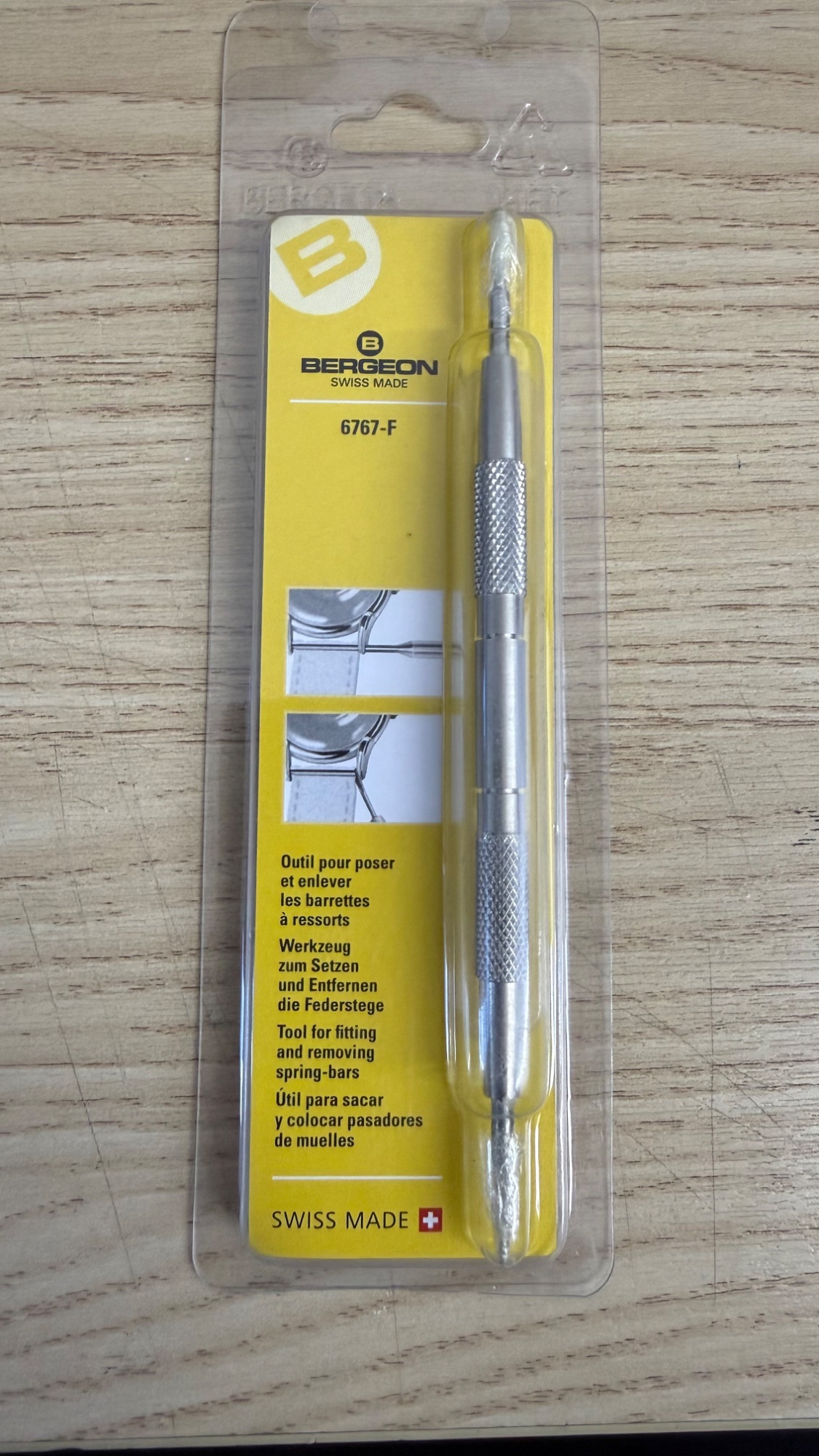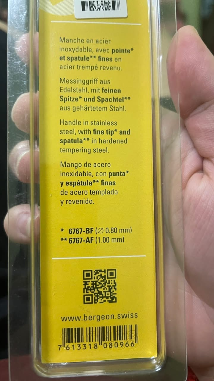 Để phục vụ nhu cầu tự thay dây, "vọc vạch" đồng hồ tại nhà mà không lo trầy xước vỏ hay hỏng chốt, em về được ít cây tháo chốt Bergeon 6767-F. Đây là model "huyền thoại" mà bất kỳ dân chơi đồng hồ nào cũng nên có trong bộ sưu tập dụng cụ của mình.