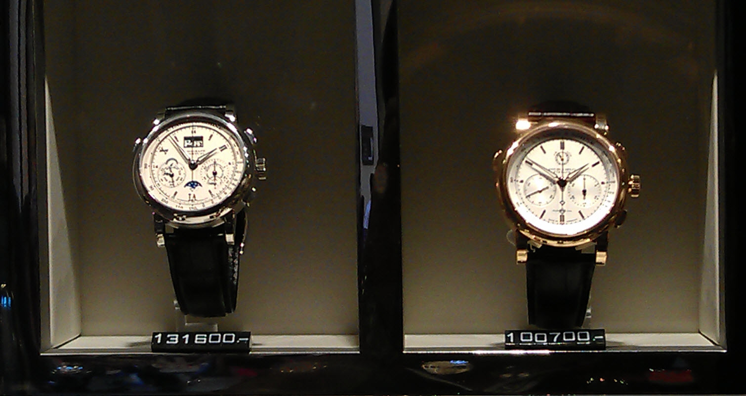 Hai em này là của hãng A.Lange & Sohne. Bên trái là Datograph Perpetual và em bên phải là Double Split. Còn em phía dưới thì xin bó tay :D
