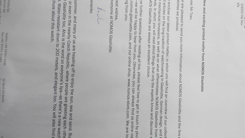 Sau khi gửi mail lần 2 với hãng thì bên toptenco đã liên lạc lại với em để xác nhận địa chỉ cho họ gửi catalouge Tissot :D