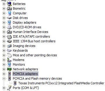 Bác vào Device Manager/ PCMCIA Adapters, sau đó double click vào PCMCIA Adapters, kiểm tra giúp em ngoài cái "Generic CardBus Controller" còn có thêm cái gì khác không?
