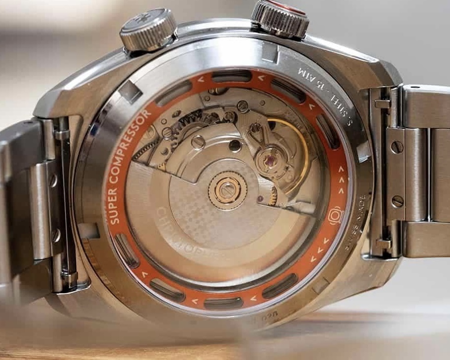 - Kính Sapphire cong lồi, đáy sau lộ máy