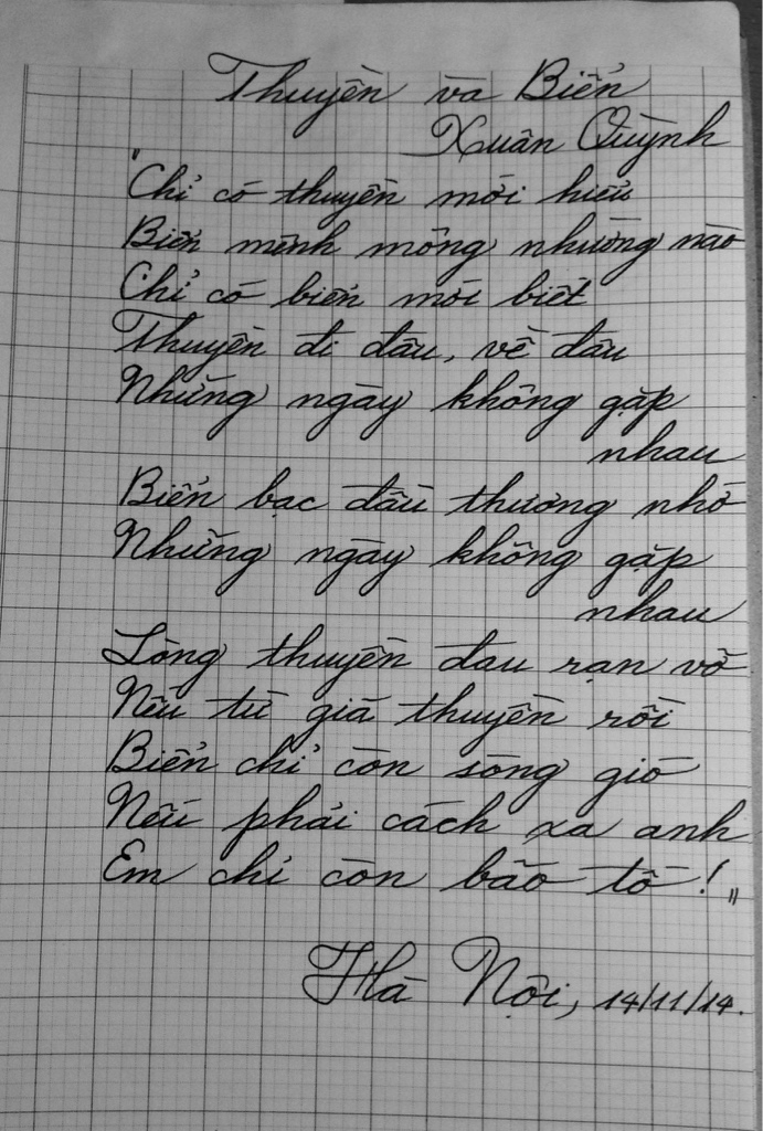 Lâu rồi không chép thơ, em chép 1 đoạn trong bài thơ Thuyền và Biển của nhà thơ Xuân Quỳnh