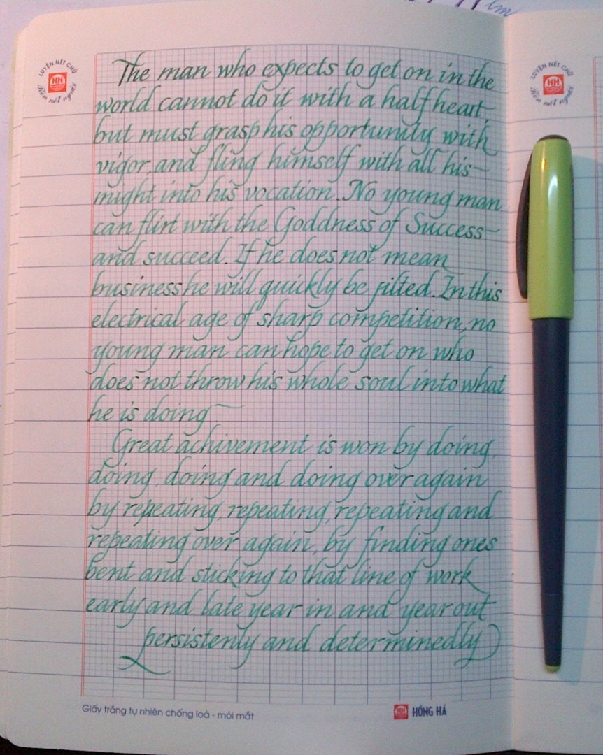 Cảm ơn bác đã tư vấn. Bác cứ khiêm tốn. E chỉ mong sao chữ e được như chữ bác viết bài đó là mãn nguyện bác ạ.Mà bác cho e hỏi e muốn viết cỡ chữ như hiện tại thì dùng bút gì được ạ?