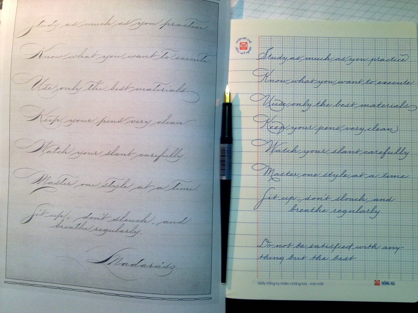 Nhiều cao thủ thành danh chữ đẹp từ bé. Em mãi đến qua 1/3 đời người mới được có duyên với chữ Latinh này, nên cố mà đi theo sợ không theo kịp.