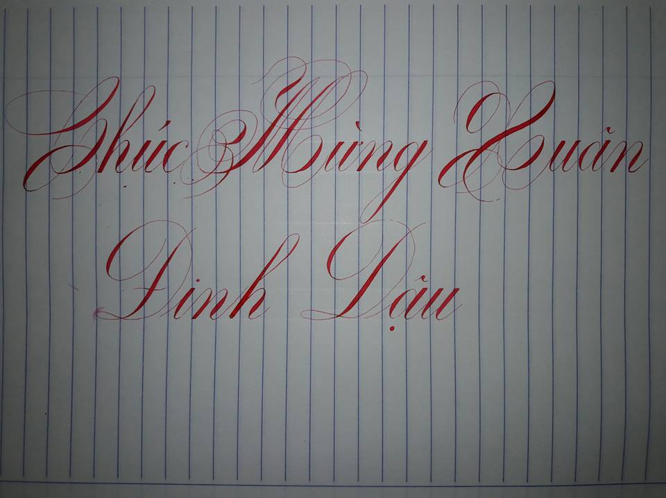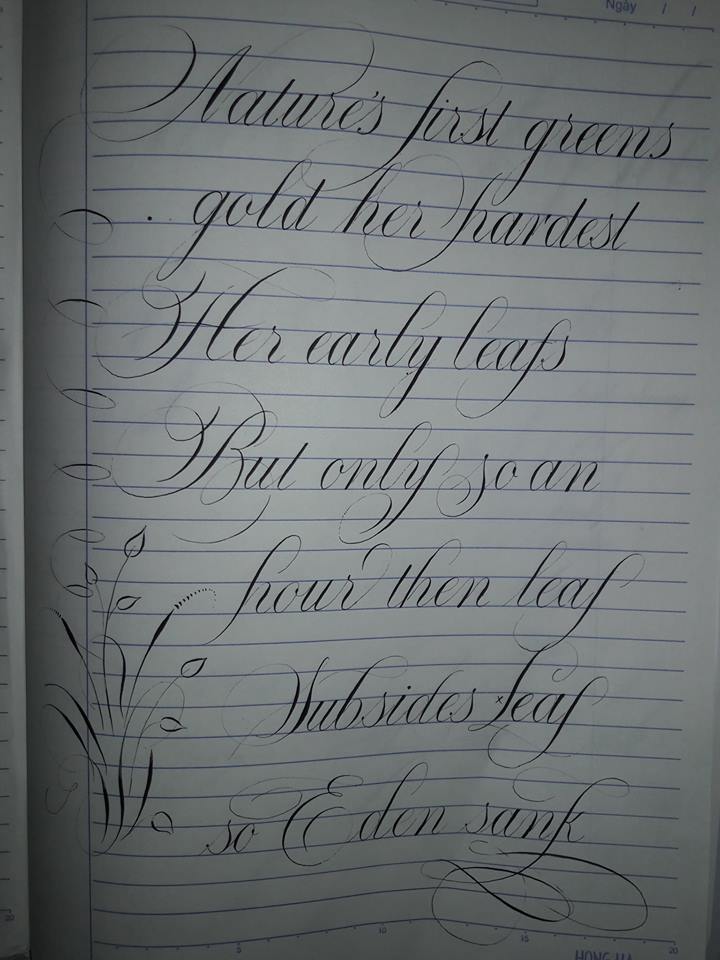 Chữ bác này chắc chắn từ spencerian mà ra, nhưng chữ bác có nét riêng của bác. Đẹp đó bác. Cố gắng bồi dưỡng :D