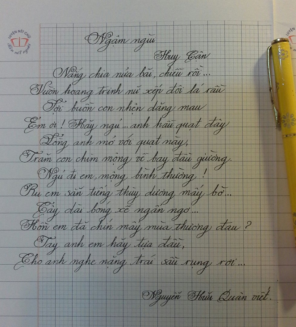 Nét chữ của bạn này có cái riêng của bạn. Đó mới là điều mình nên tâm đắc và đầu tư bạn à.