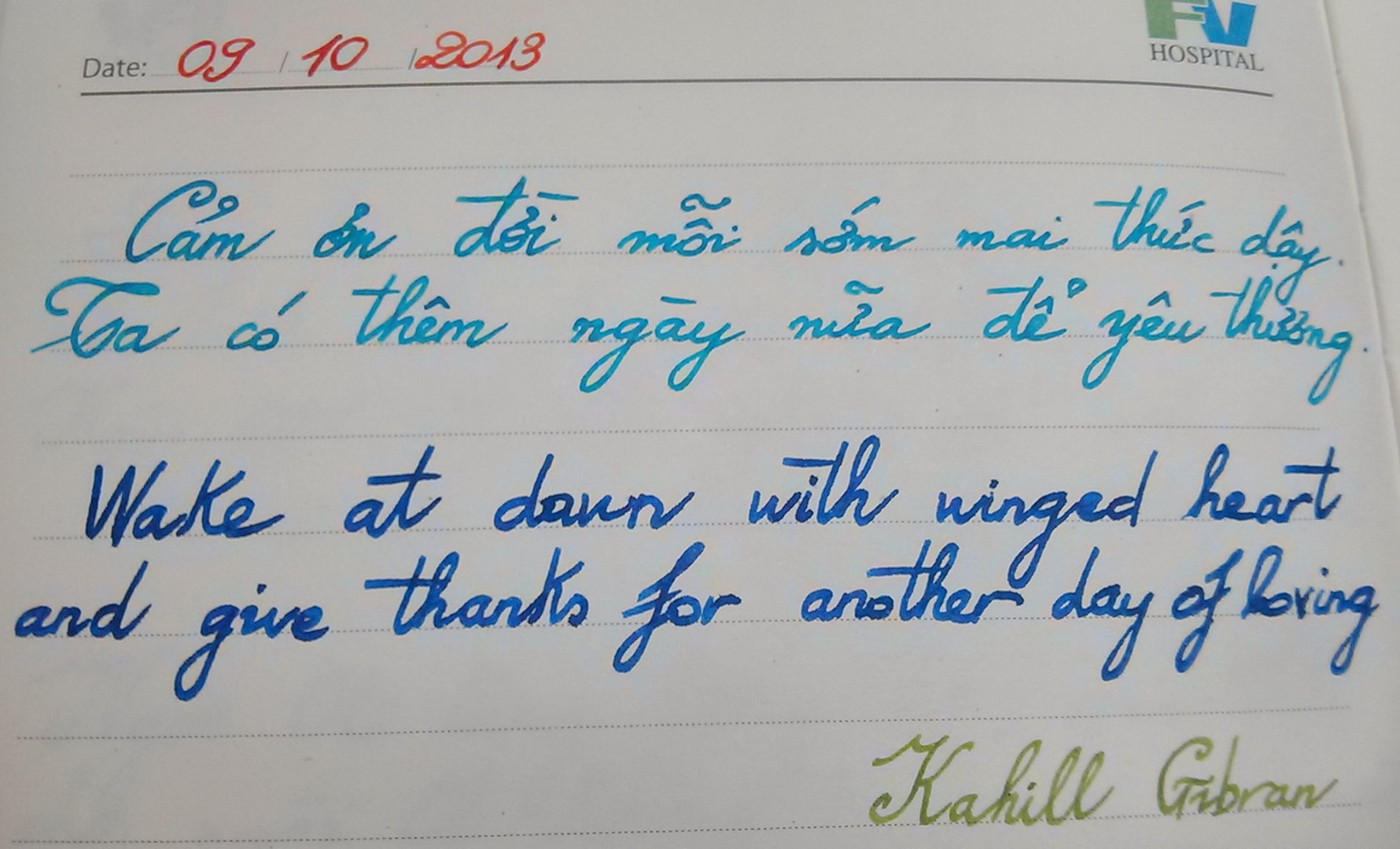 Thắm thoát cũng đã 01 năm rồi, chữ của mình cũng vẫn như xưa, có chăng là già đi đôi chút ..Mình cũng giống bạn PreliminaryMAC khi thích thì cầm bút lên và viết, đúng là nét chữ của bạn PreliminaryMAC nhìn hiền hậu, bay bổng và lãng mạn thật, mình chưa đạt đến trình độ đó nên tiếp tục học hỏi ..Đặc biệt là nội dung viết về cà phê sáng lại tự pha màu cà phê đúng là đẳng cấp và công phu thật.