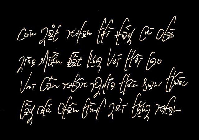 Thích cái ý tưởng của bạn! Vậy chữ này chắc chuyên dùng để viết bí kíp, ví dụ như Tịch tà kiếm phổ : Dẫn đao tự cung ! Sorry các bác, em lạc đề tíBác làm em nhớ tới những kiếm phổ trong tiểu thuyết Kim Dung.