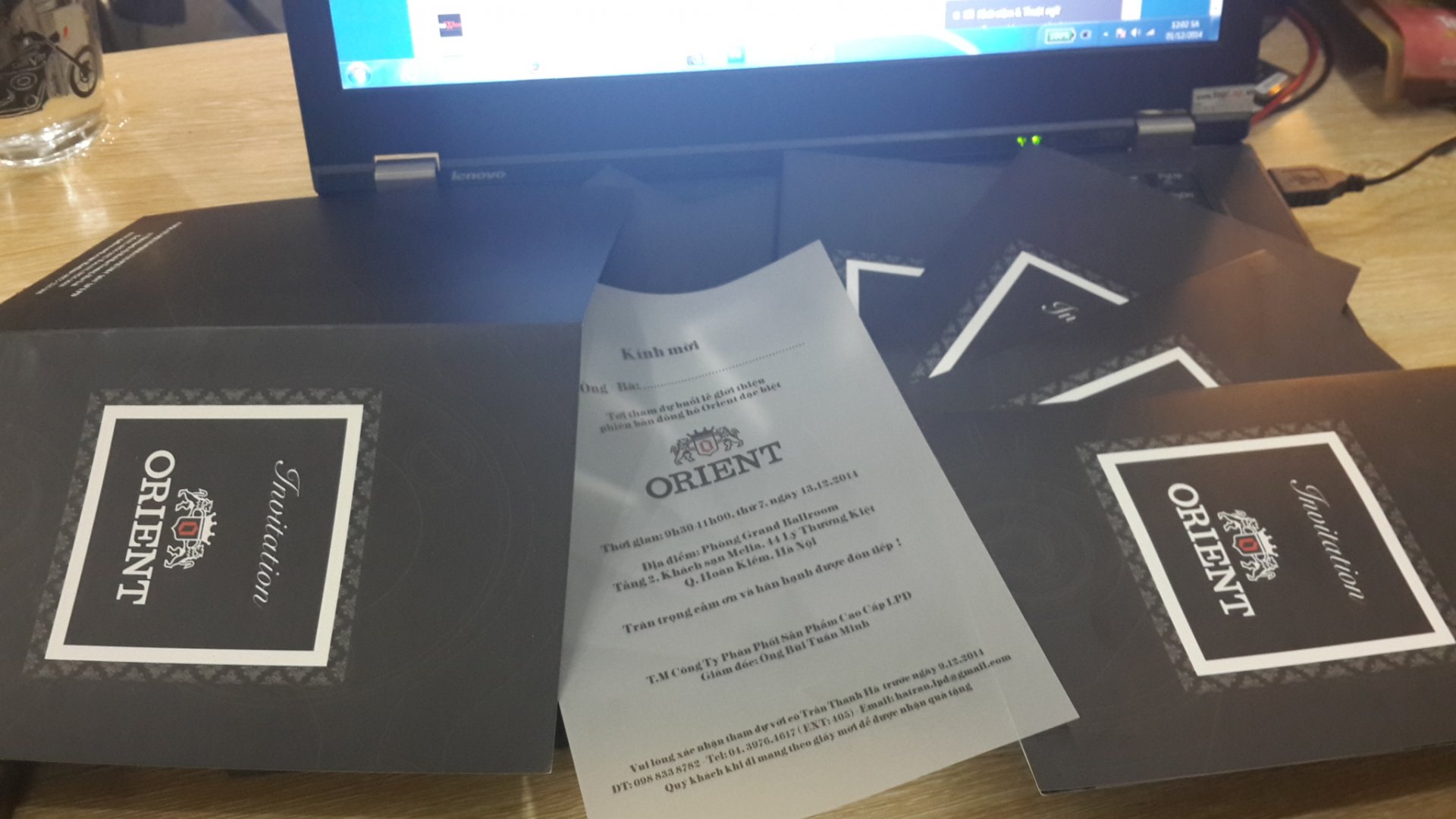 Hiện tại em đang còn dư 3 tấm vé mời tham dự Event giới thiệu Orient Limited Edition vào 9h30 ngày 13/12/2014 tại khách sạn Melia, 44 Lý Thường Kiệt.