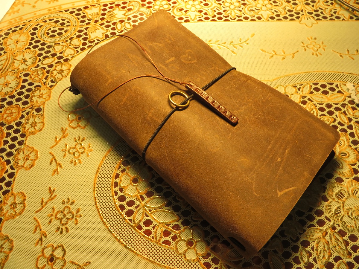 Quyển sổ tôi đặt được làm từ da sáp với bề mặt da nhìn như bị xước đôi chỗ một cách ngẫu nhiên, tạo phong cách khá bụi bặm. Da này tương đối mềm có mùi da và mùi thuốc nhuộm khá nồng, độ dày chỉ khoảng 2mm, hơi thất vọng một chút vì cầm nó không thực sự đầm tay lắm, dày khoảng 3mm hơn thì vừa