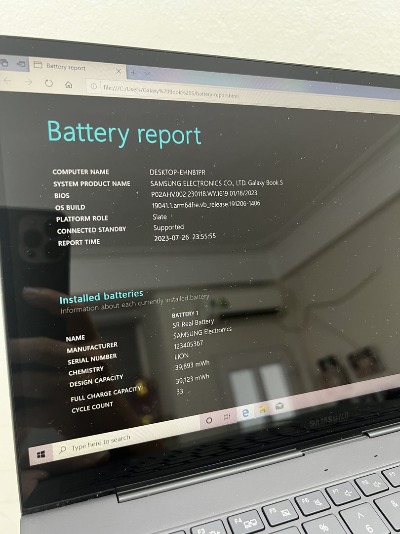 Viên pin trên chiếc Galaxy Book S là viên pin 42Wh. Mặc dù Samsung đã không trang bị quạt tản nhiệt cho chiếc Galaxy Book S của mình, nhưng thời gian sử dụng của nó khá ấn tượng khi đạt mức 23 giờ sử dụng liên tục với tác vụ xem phim.