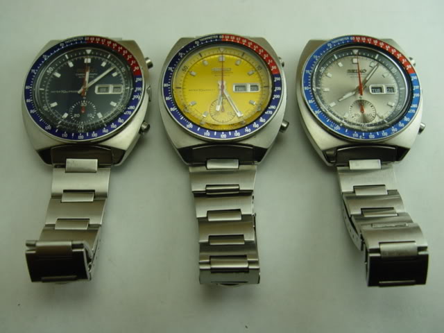 6139-600x là dòng đồng hồ chronograph đầu tiên của Seiko và thông thường nó có 4 mẫu khác nhau. 6139-6005 và 6139-6009 là hàng cho thị trường Mỹ, 6139-6000 và 6139-6002 là cho thị trường khác. Về cơ bản, các mẫu này giống nhau với vành ngoài có tính năng tachymeter (đo tốc độ) màu xanh + đỏ không xoay được và một vành bên trong mặt đồng hồ màu vàng hoặc đen có thể xoay hai chiều đến 60 phút. Với các màu khác vàng hoặc đen, đó là do tác dụng của thời gian và ánh sáng khiến chúng bị ngả màu.