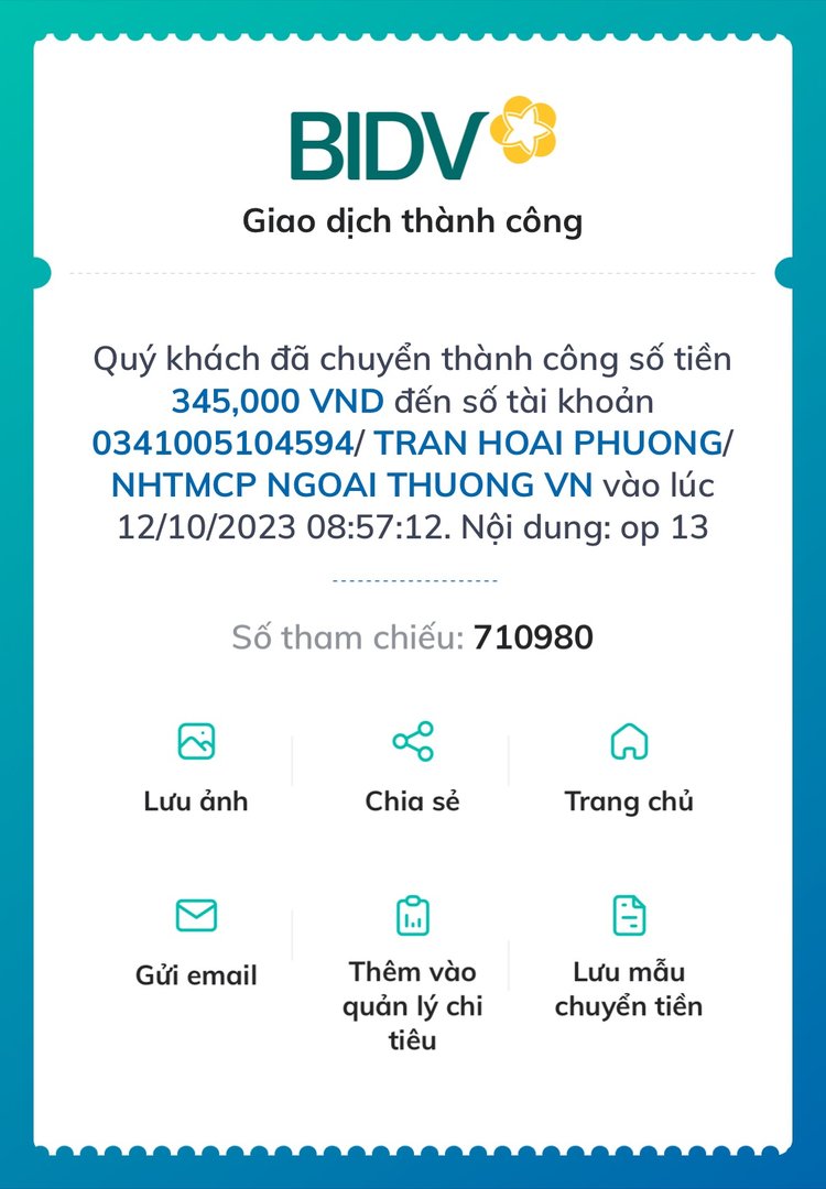Số TK: 0341005104594 - VCB Tỉnh Hải Dương