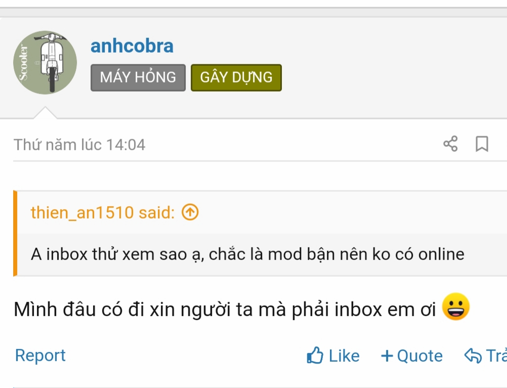 Nói đi thì cũng phải nhìn lại: ông bán bỏ cái tôi đi một chút, nhắc Mod một câu thì đã ko phải dài đến hôm nay